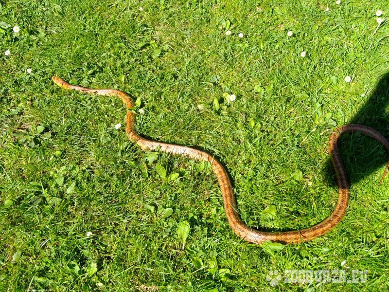 Popis: Asi 190 cm dlouhá užovka černá , jedná se o samce s odstraněnými pohlavními orgány ,protože musel na operaci z důvodu vyhřeznutí hemipenisu. Po operaci je zcela v pořádku bez následků. Je nekousavý klidný . Staří asi 7 až 8 let .Volejte kdykoliv na 604388509