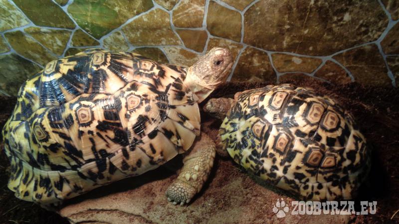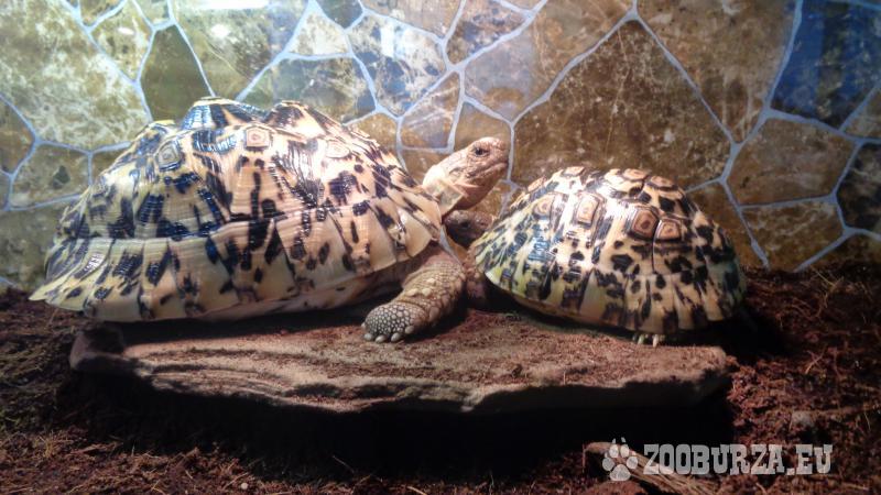 Popis: prodam dve krasne a zdrave zelvy leopardí.Jsou 3 a 4 roky stare.Cena je za obe dve.