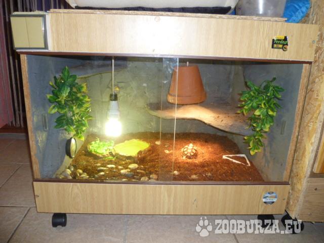 Popis: Z důvodu stěhování nabízím krásnou želvu ostruhatou. (jedná se o největší suchozemskou želvu,která nezimuje) Velmi vzácný druh. Stáří cca 2 roky. Je to ještě malinkej prcek - zlatíčko Terárko z OSB desek,šoupací dveře