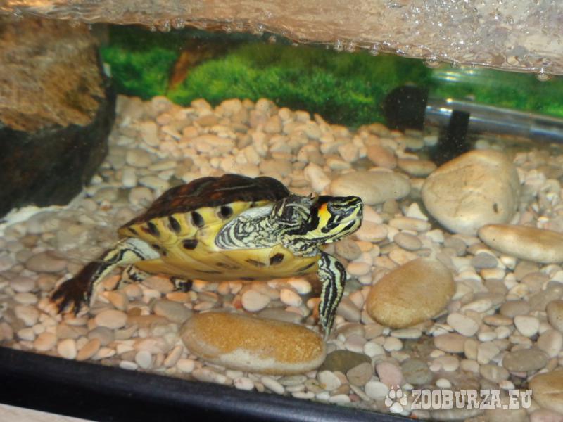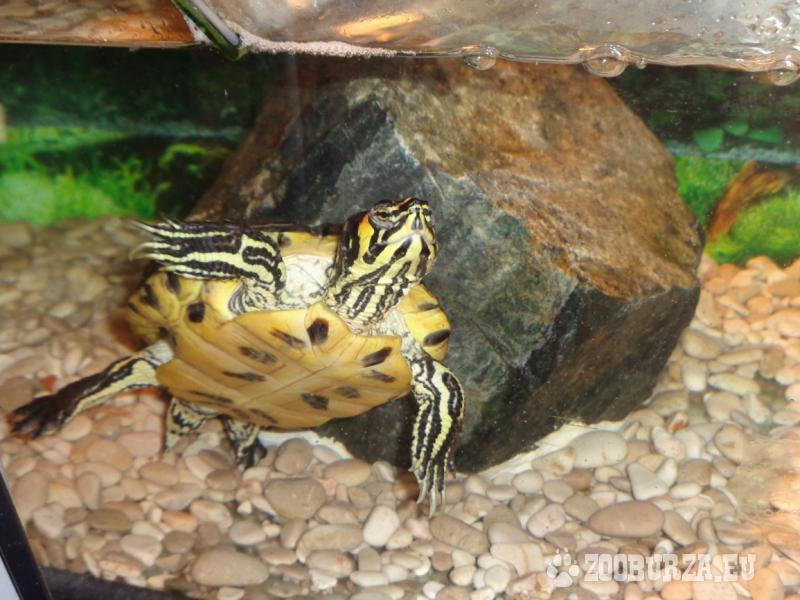 Popis: Prodám vodní želvu i s akváriem a celkovým vybavením. Želva: stáří tipuji na 8 až 10 let, průměr krunýře je 11 cm. Akvárium: délka - 80 cm, šířka - 37 cm, výška - 36 cm. K dispozici mám: lampičku, filtr (nově zakoupený), topení. V akváriu se dále nachází velký kámen a drobné kamínky. Prodávám z důvodu - nedostatek prostoru po přestěhování do menšího bytu. Na ceně se lze dohodnout.