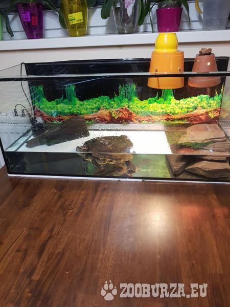 Popis: Nabízíme vodní želvu (cca 5 let starou) a nové akvárium 80x30x35 cm. Rodinné důvody. Cena 1000,- Kč nebo dohodou.