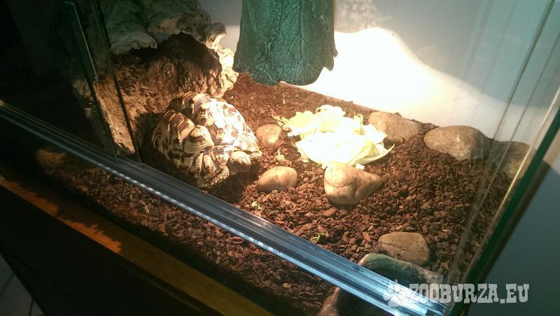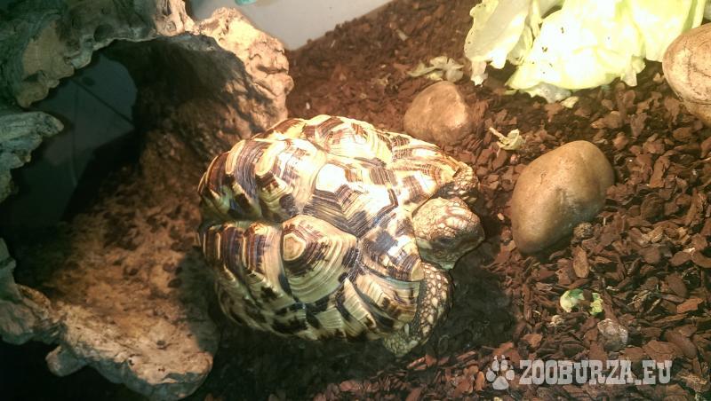 Popis: Prodám samičku želvy pardálí (geochelone pardalis), stáří 7 roků, včetně terária.
