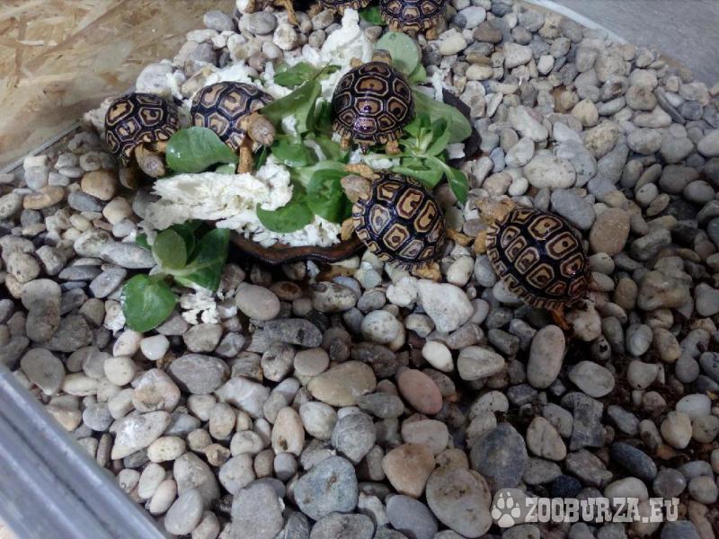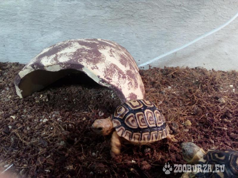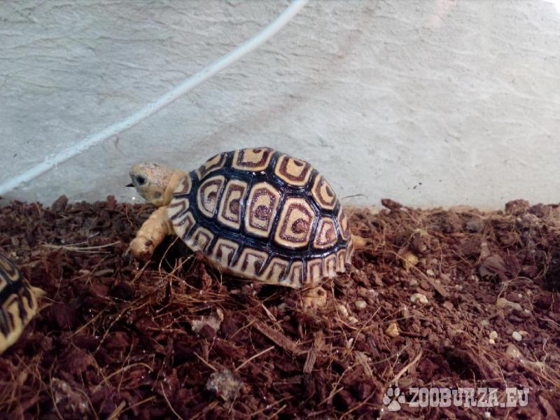 Popis: Zdravá, vitální, pěkně rozkrmenná mláďata želv pardálích z vlastního malého chovu. Vymzlená, zvyklá na každodenní kontakt s člověkem. Jedná se o suchozemské, africké želvy, nezimující, nepodléhající registraci. Želvičky zdarma dovezem do Prahy, Kladna a okolí, nebo zajistíme dopravu po celé ČR.