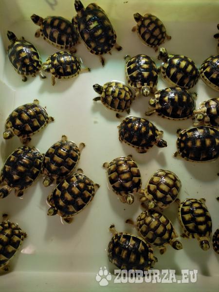 Popis: K prodeji nabízím různé druhy želviček z vlastního chovu, narozené 2022. Rádi poradíme s chovem. Želvičky podléhají povinnou registraci (Cites). V případě zájmu nebo jakéhokoliv dotazu, nás kontaktujte na tel: 774579582 nebo na email. Jirka.Haltuf@seznam.cz při odběru většího množství želviček možná sleva. Stálý odběr v Hradci Králové. ŽELVA VROUBENÁ 1000 Kč foto ŽELVA VROUBENÁ 1300 Kč čip ŽELVA ZELENAVÁ ZELENAVÁ - malý vzrůst, Toskánsko (Testudo hermanni hermanni) 2500 Kč ŽELVA ZELENAVÁ (Testudo hermanni ) 1000 Kč foto ŽELVA ZELENAVÁ (Testudo hermanni ) 1300 Kč čip ŽELVA ŽLUTOHNĚDÁ 1700 Kč čip Rozvoz po celé ČR.