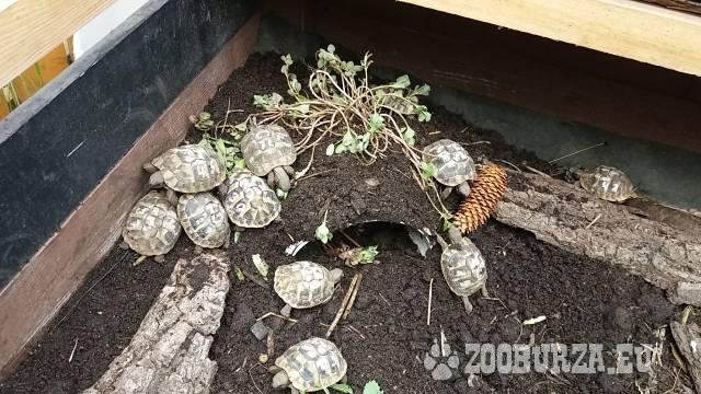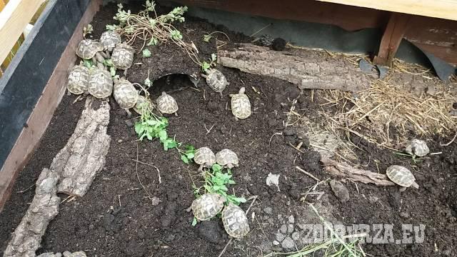 Popis: Rádi bychom vám nabídli želvy z našeho chovu. K prodeji máme roční želvy zelenave (testudo hermanni) jejich velikost je cca 6cm. Jsou velice aktivní, zdravé. Krmené kvalitní zelenou stravou z naší zahrady. S chovem ochotně poradíme a jsme vám k dispozici i kdykoli poté když si nebudete a něčím kolem želvy rady. Neváhejte nás kontaktovat a ptát se. http://www.prodejzelv.cz